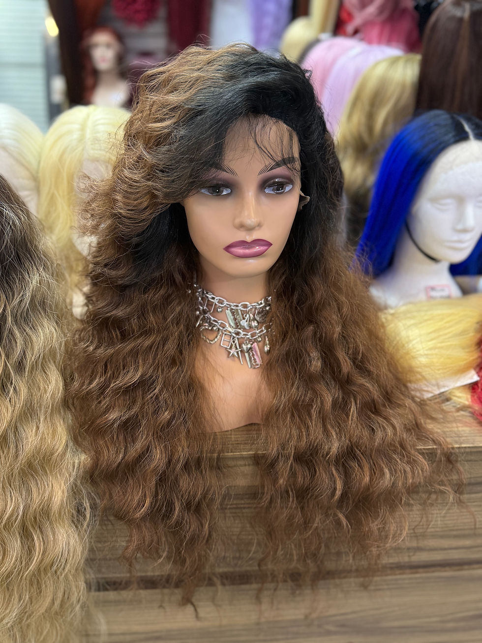 Front lace marrom ombrehair ondulada 75cm fibra bio uso diário promoção tela hd